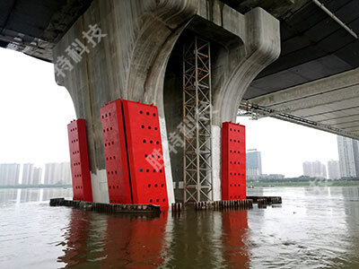 自浮式復合材料橋梁防撞設(shè)施,是安裝在橋梁橋墩四周,隨著江面(河道、海面)水位的高低依靠自身的浮力沿著橋墩軸線上下升降,始終處于船舶撞擊高度的防撞設(shè)施。根據(jù)設(shè)防橋梁或承臺規(guī)格,當最高水位與最低水位相差較多...